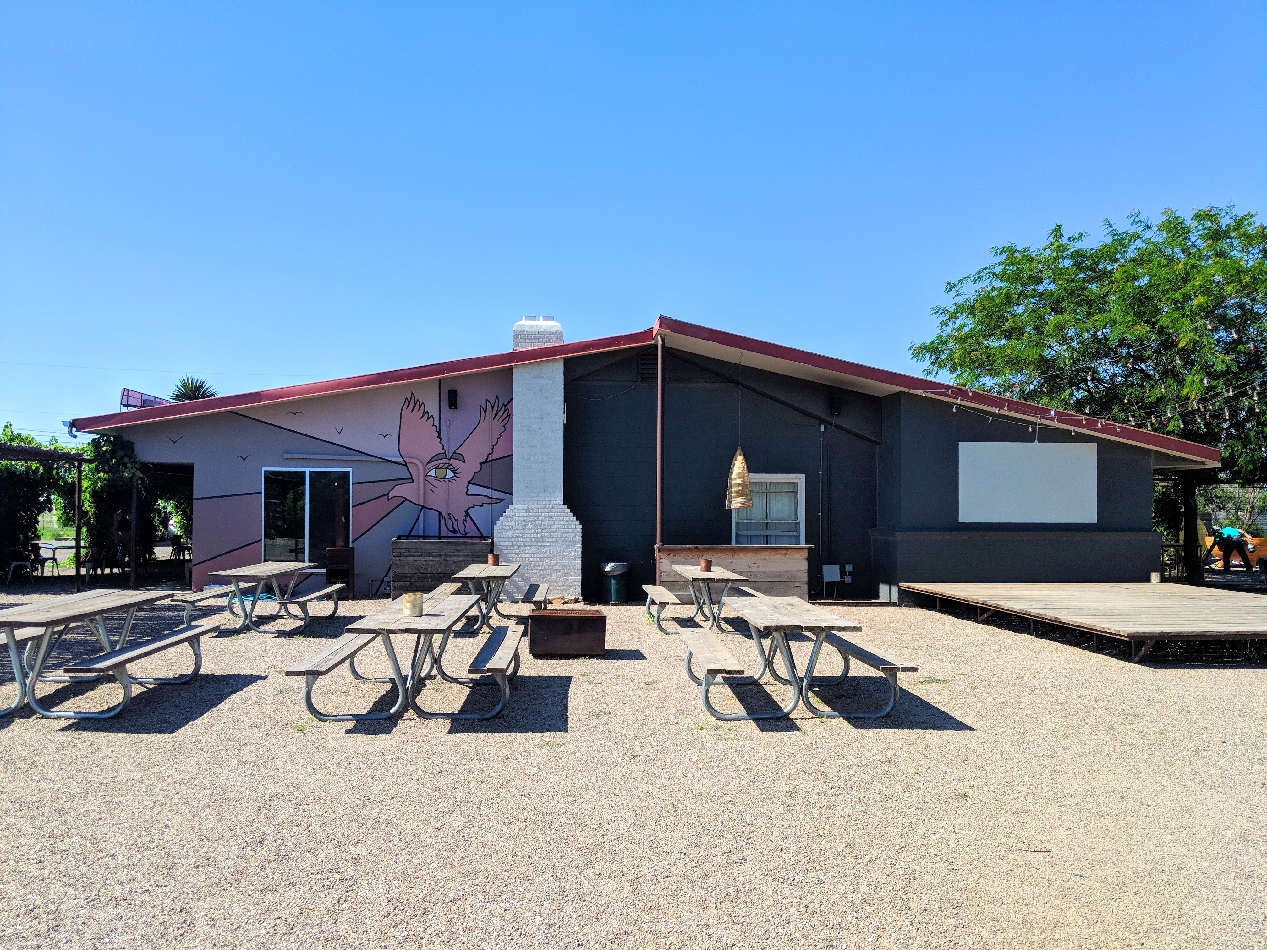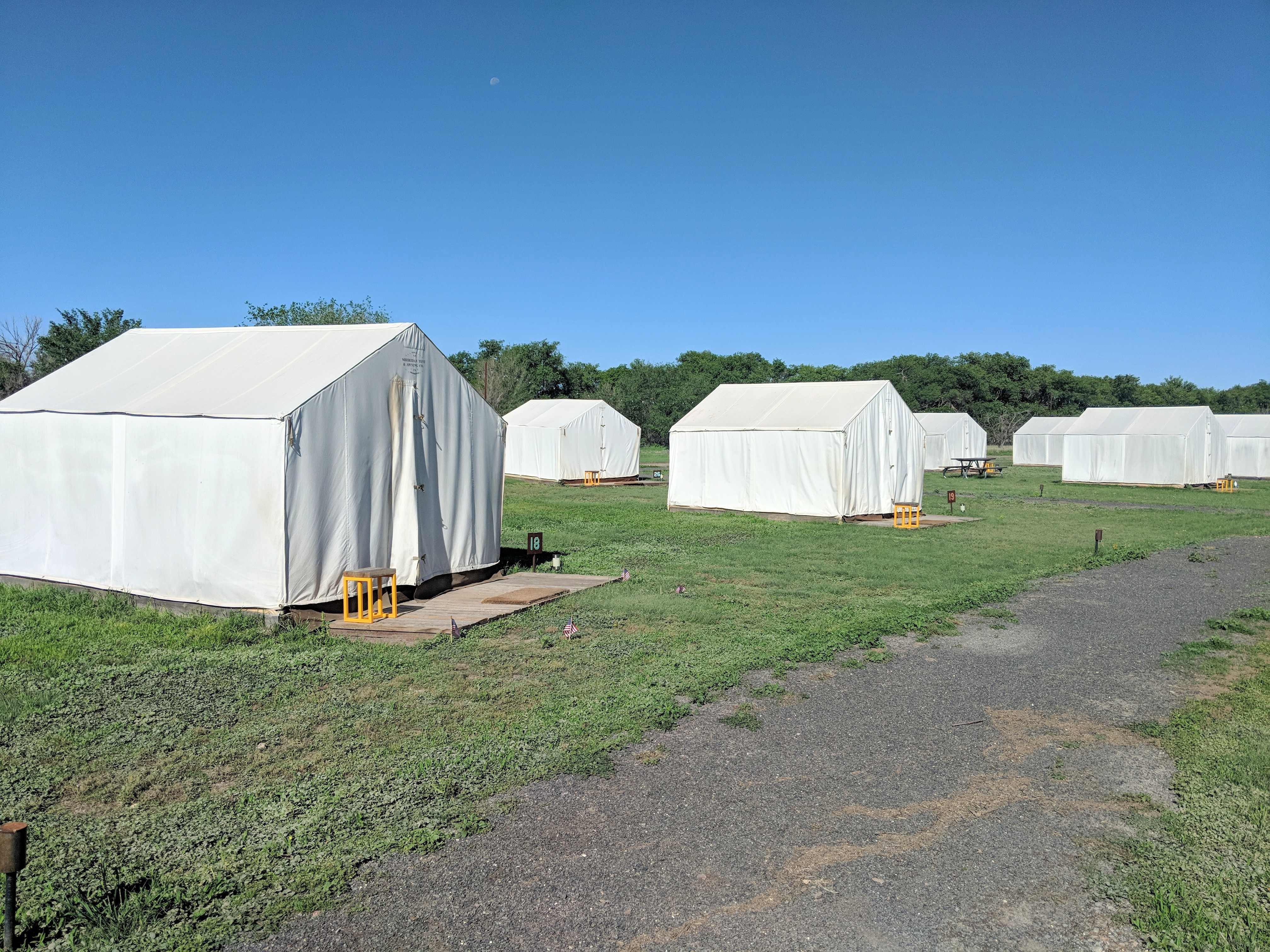 Finally, we accepted defeat, took the tent down, and headed into town. At this point it was around 9 PM, and the few hotels in the area were closed, so we ended up renting a “safari tent” at a luxury campground (yes, you read that right) called El Cosmico.