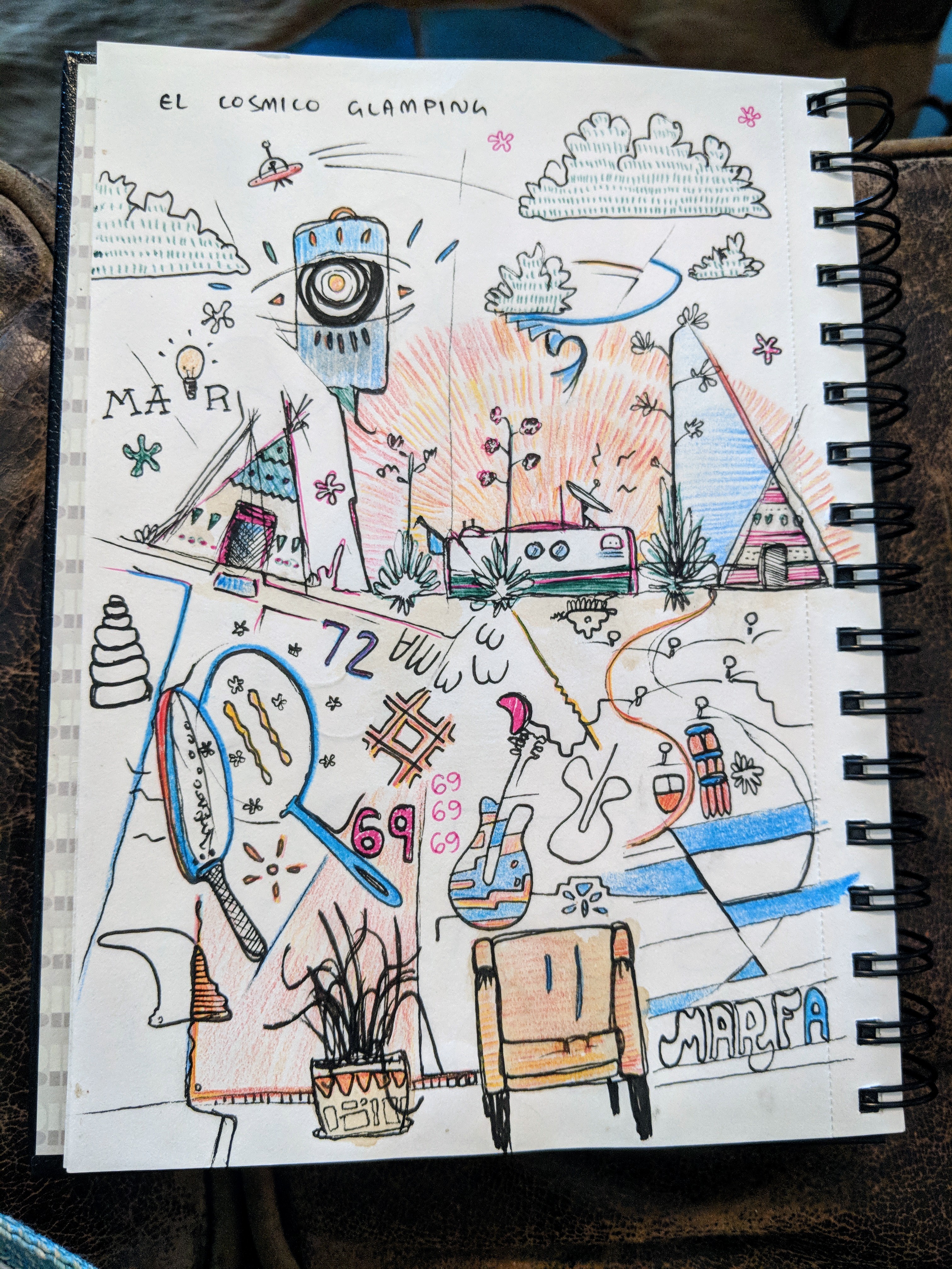 Overall, however, we spent most of our time at El Cosmico, lolling in hammocks and playing guitar at our campsite, doing shots of tequila to prepare for karaoke (we had to lick salt off of the paper of Sean’s sketchbook because our hands were covered in bug spray).