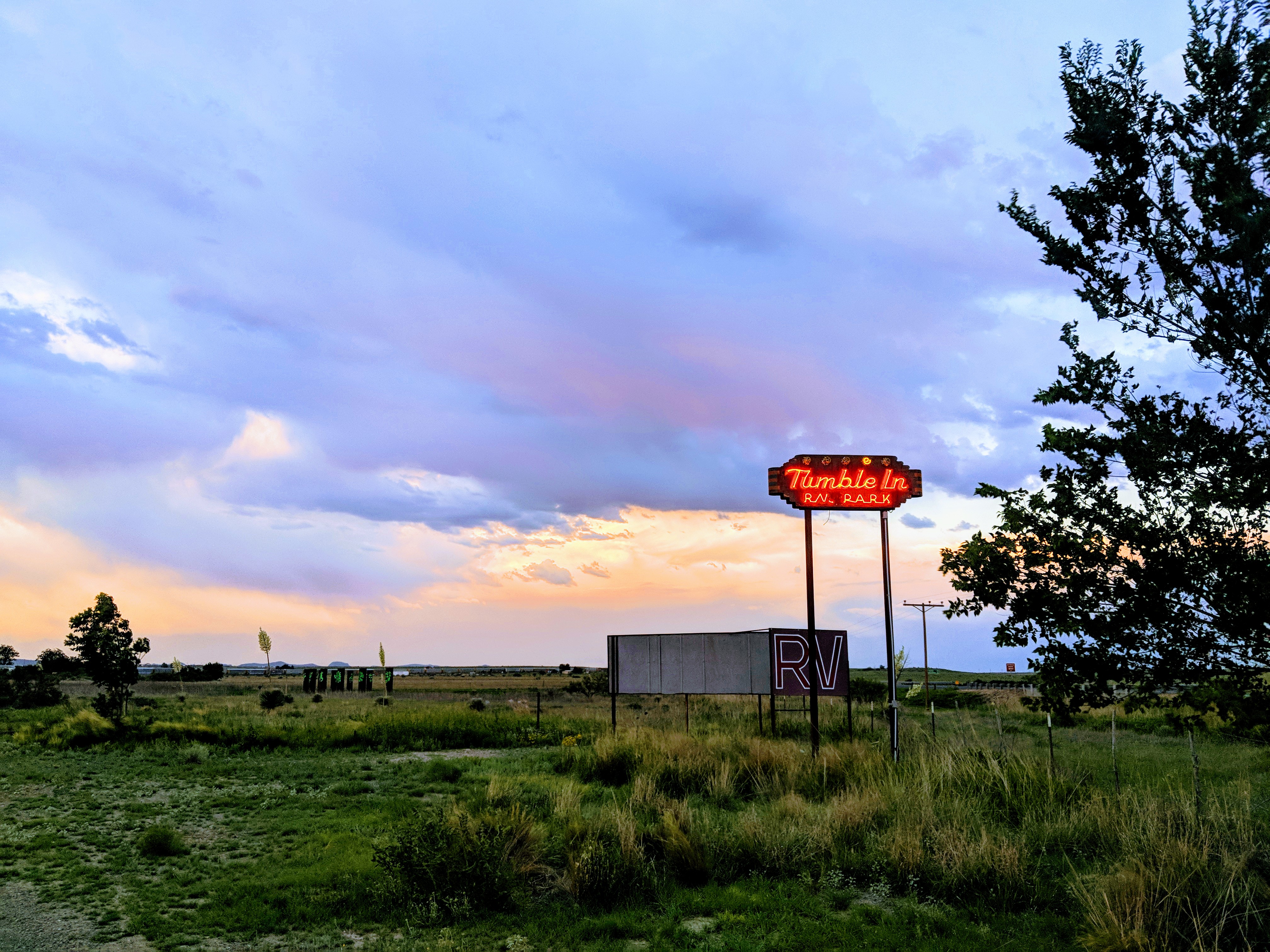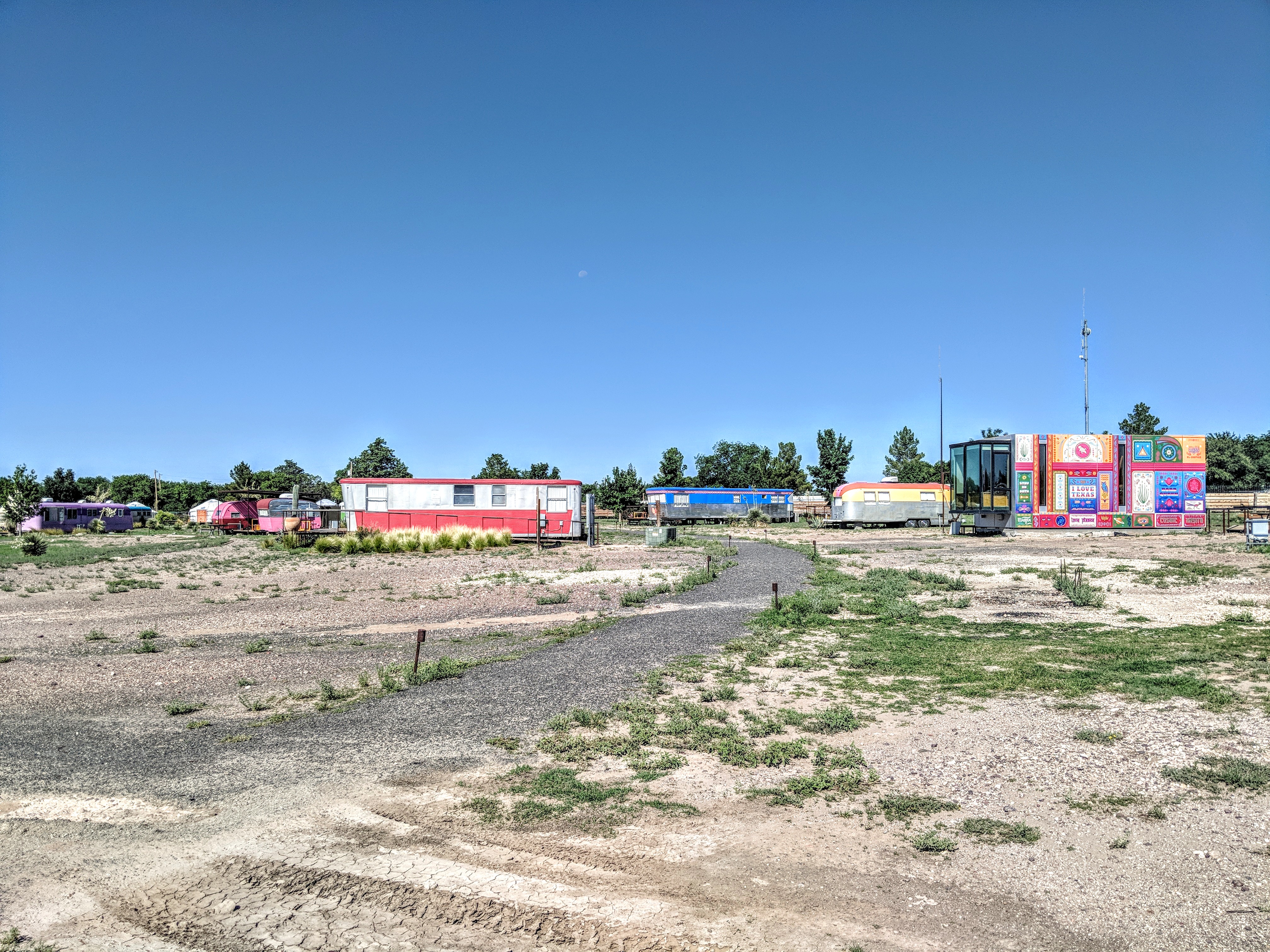 After a rough night’s sleep in Sonora and a long, windy drive across western Texas (windy as in wind, not winding; I would have killed for some winding), our spirits lifted considerably upon landing in Marfa. Our first stop was the Tumble In, a bare-bones but decidedly charming RV park.