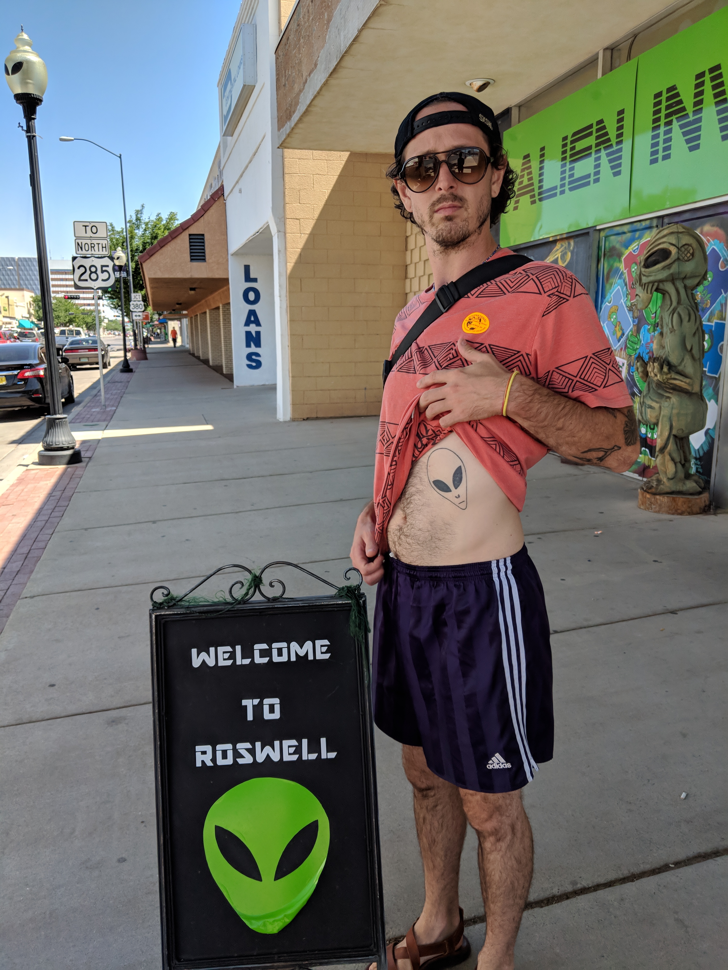 The stretch of road between Roswell and Santa Fe was perilously empty, in the way that makes you glance nervously at your gas gauge every few minutes even if you just fueled up. It seemed we were the only people on the road.