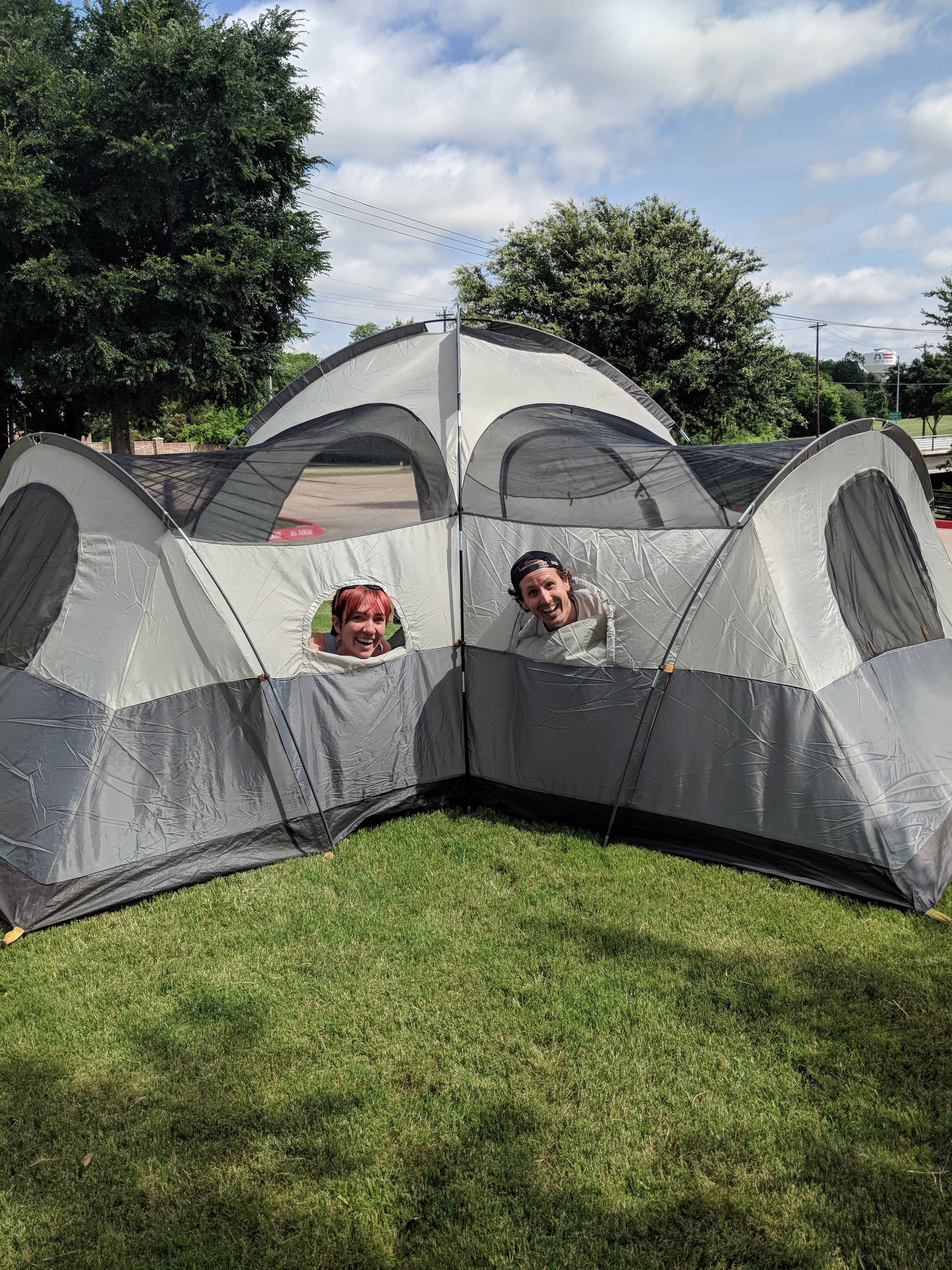 While neither of us was particularly happy about paying Best Western rates to sleep in a tent, that tent did have metal poles and a real bed, which was more than our current setup offered. We slept like two dirty, cranky babies.